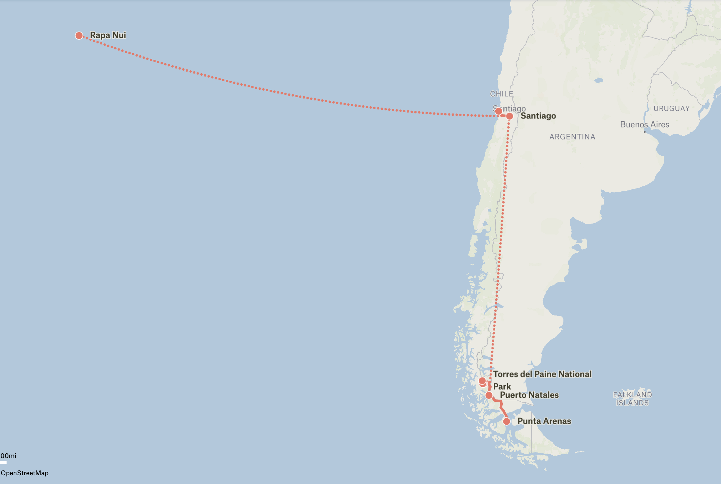 From the glaciers of the south to the moais of Rapa Nui, Chile is a place that feels impossible to summarize. We spent just about a month there, split between Valparaíso, Patagonia (Torres de Paine, Puerto Natales, and Punta Arenas), and Rapa Nui. We stayed in campsites, Airbnbs, and hostels and largely cooked our own food.